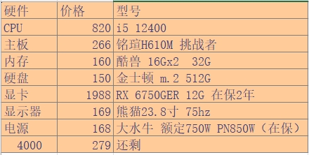 昨晚我的好朋友问我,想买一台中高配置的主机,有什么推荐吗?我一看,不说预算,纯属扯淡。还是搜了一下现在的显卡排行榜和CPU排行榜,好的中高端,选出i5 13代+4060为代表,差不多4300起。后面他才说希望4000这样包主机和显示器和小音响。我想了想,能接受二手的话,倒是可以,不然都要全新,这预算只能往其他硬件身上砍。