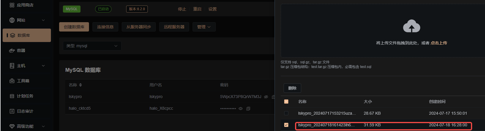 我是用docker镜像安装Lsky Pro,根据迁移官方的升级教程(迁移也是同理。)